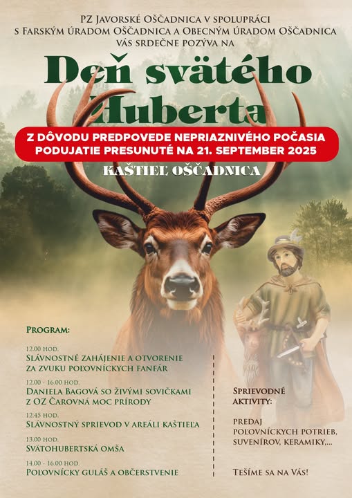Aktuality - Deň Sv. Huberta Kaštieľ Oščadnica - OZNAM