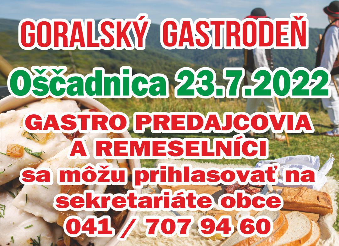 jedinečná gastronomická akcia určená pre všetkých milovníkov dobrého jedla a tradičných regionálnych špecialít. Predajcovia a remeselníci sa môžu prihlasovať na sekretariáte obce 041/7079460. Tento projekt sa uskutoční vďaka podpore Nadácie SPP.