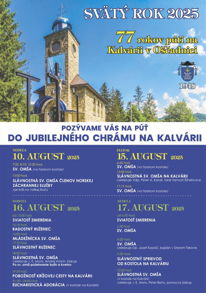 ku cti Nanebovzatej Panny Márie v Oščadnici. Púť sa uskutoční v dňoch 15. - 17. augusta 2025.