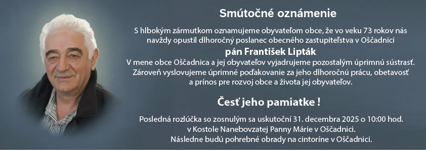 S hlbokým zármutkom oznamujeme obyvateľom obce, že vo veku 73 rokov nás navždy opustil dlhoročný poslanec obecného zastupiteľstva v Oščadnici