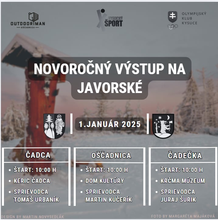 1. januára 2025 štartujú tri skupiny presne o 10.00 h a to od komunitného strediska KERIC Čadca (Nábrežná 1351), Krčmy Múzeum v Čadečke a od Domu kultúry Oščadnica (Námestie M. Bernáta).
